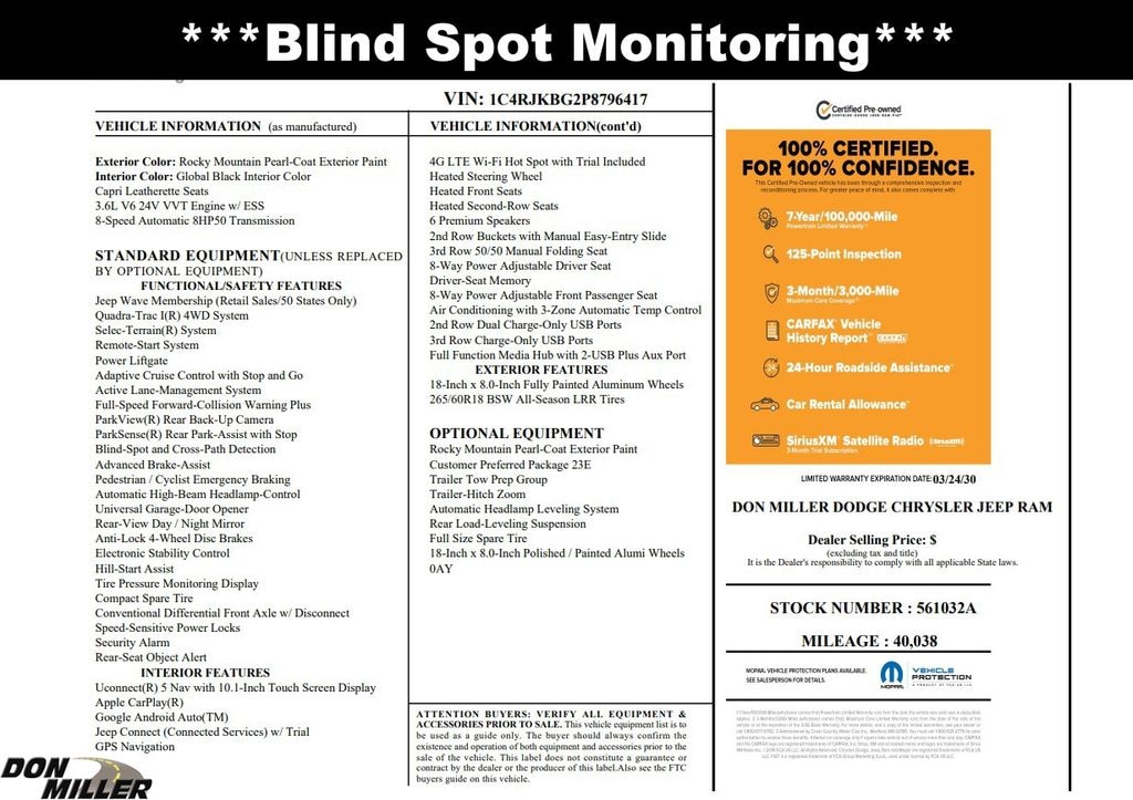 View this 2023 Jeep Grand Cherokee SUV L Limited for sale at Don Miller Dodge Chrysler Jeep Ram in Madison, WI