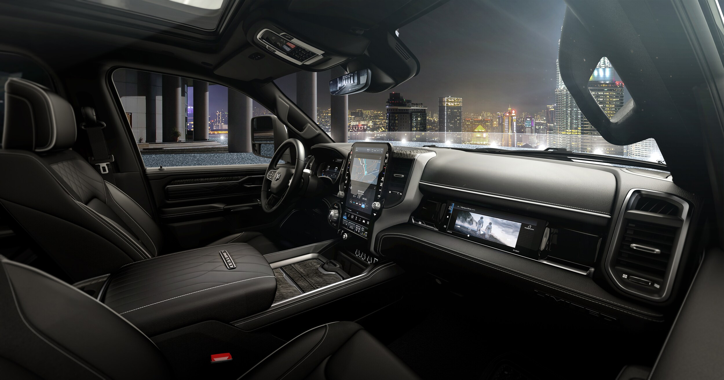 The Laramie introduces luxury to Stoughton drivers, with leather-trimmed bucket seats, 10-way power front seats with ventilation, Alpine Performance audio, a heated leather steering wheel, and 20-inch premium wheels. Available features include four-corner air suspension, power deployable running boards, and a dual-pane panoramic sunroof.
