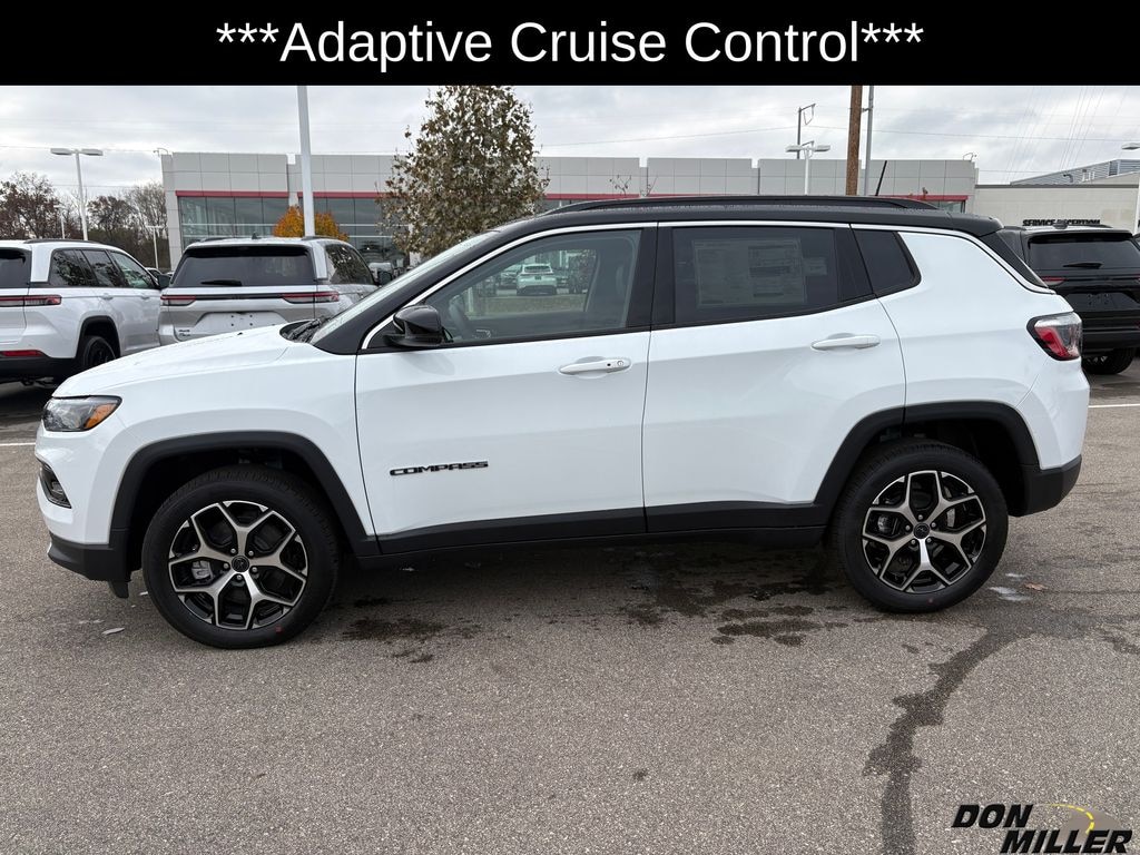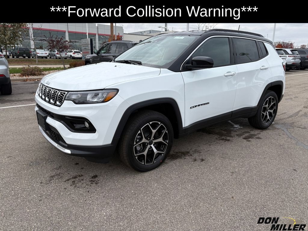 Bright White Clearcoat 2026 Jeep Compass Limited ***Blind Spot Monitoring***, ***Forward Collision Warning***, ***Adaptive Cruise Control***, ***Lane Departure Warning***, ***Apple Car Play/Google Android Auto***, Auto High-beam Headlights, Automatic temperature control, Heated steering wheel, Power Liftgate, Steering wheel mounted audio controls.